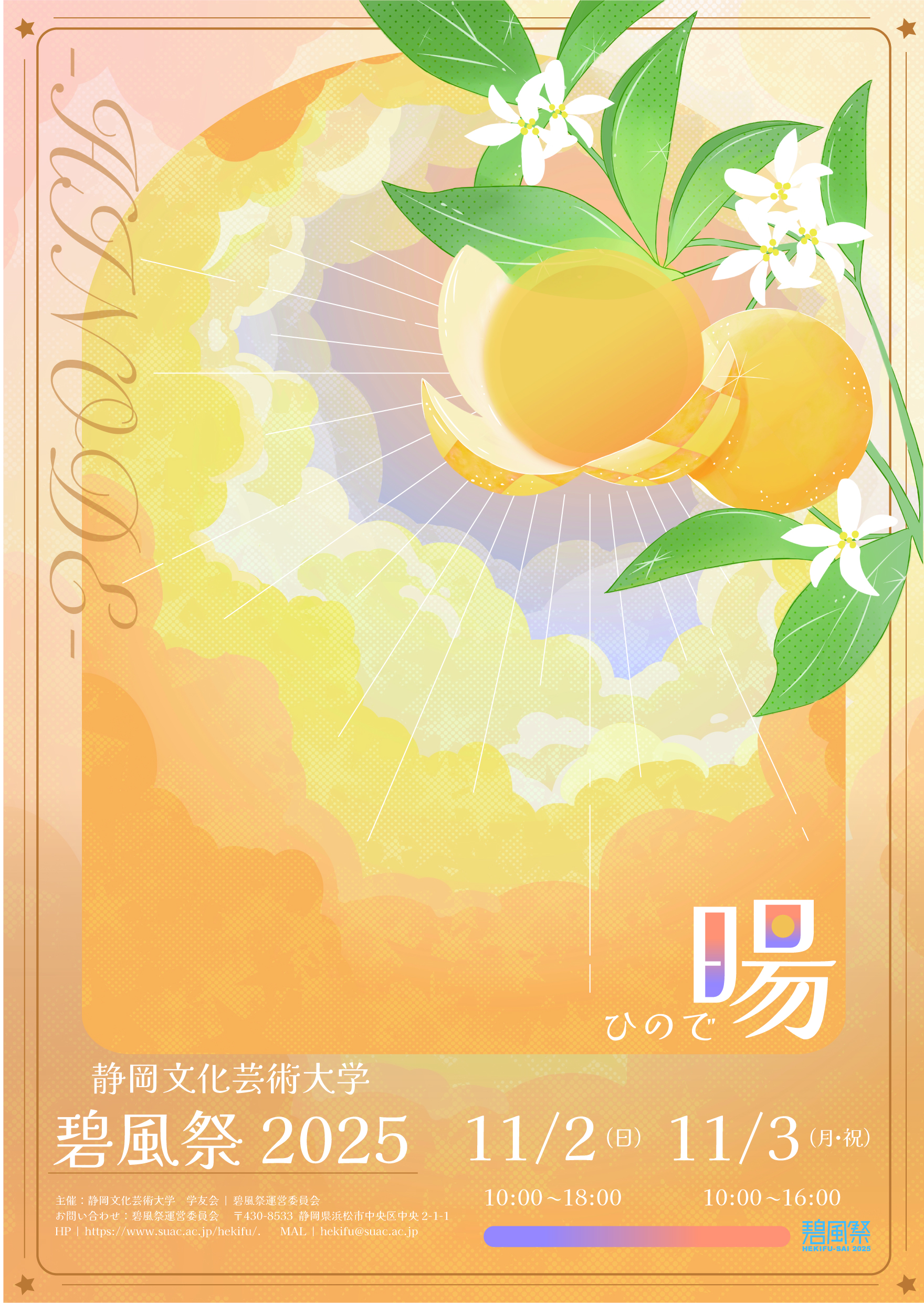 碧風祭運営委員会本部 E-mail:hekifu@suac.ac.jp(注)電話はありません。お返事にお時間をいただきます。