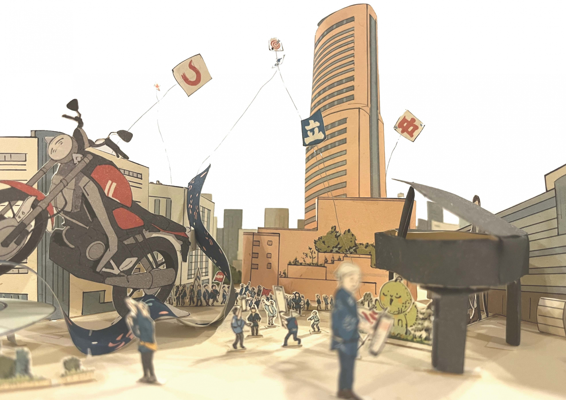 江戸時代の仕掛け絵本「おもちゃ絵」の技法で立版古というものがあります。錦絵を切り抜いて組み立てると、風景や物語の一場面が再現されるというものです。この立版古を使って、私の生まれ故郷である浜松の歴史を古代から現代まで5つに分けて作成しました。浜松の歴史は、政治の中心地とは違い華やかなものばかりではありません。しかし絵本を自ら切り貼りし組み立てることで、地方の歴史も色づき、身近に感じることができるのではないでしょうか。