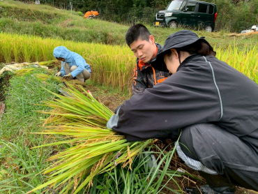 本学の学生団体「引佐耕作隊」は「久留女木の棚田」(浜松市浜名区引佐町)で米作りを行っています。